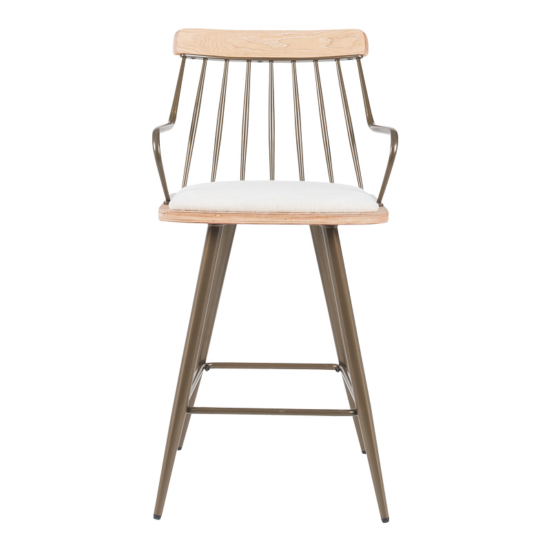 Дървени акценти от шперплат в бял цвят, метални крака в бронзов финиш
