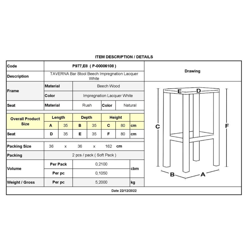 Бар стол TAVERNA – БЯЛ