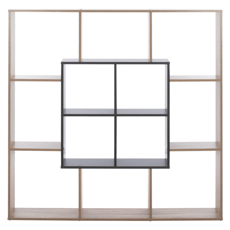 Предлага осем периферни рафта за отворена организация и четири централни рафта за декорация и показване на любими книги и аксесоари