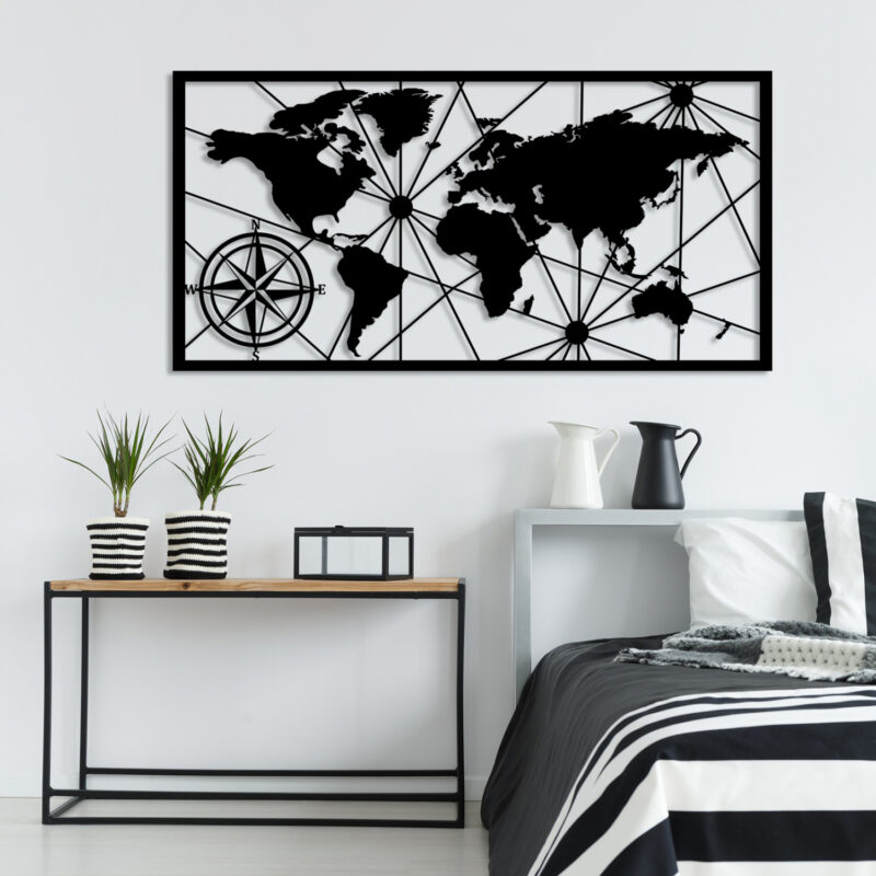 Метална декорация за стена – Световна карта в черно