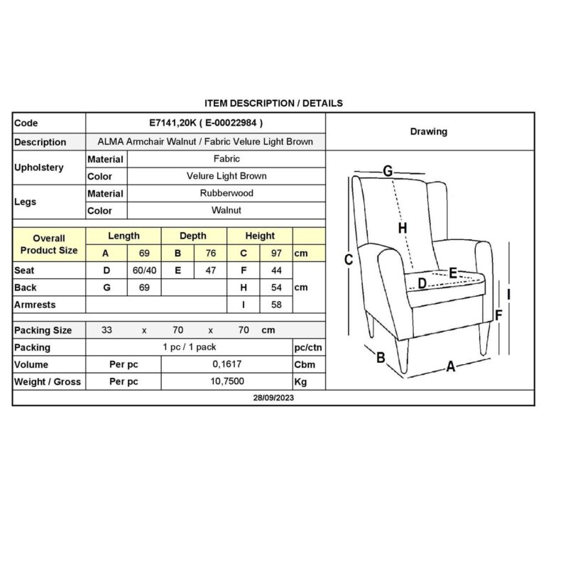 Фотьойл ALMA Орех / Светло кафяво Велур