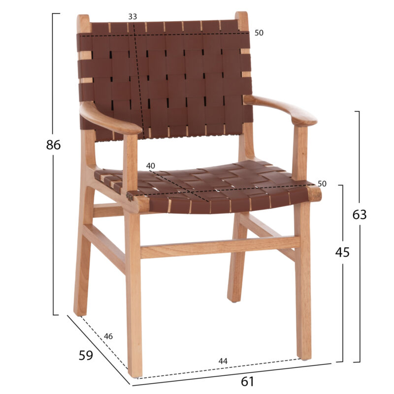 Рамка от китайско дърво TOON, седалка и облегалка от плетена PU кожа