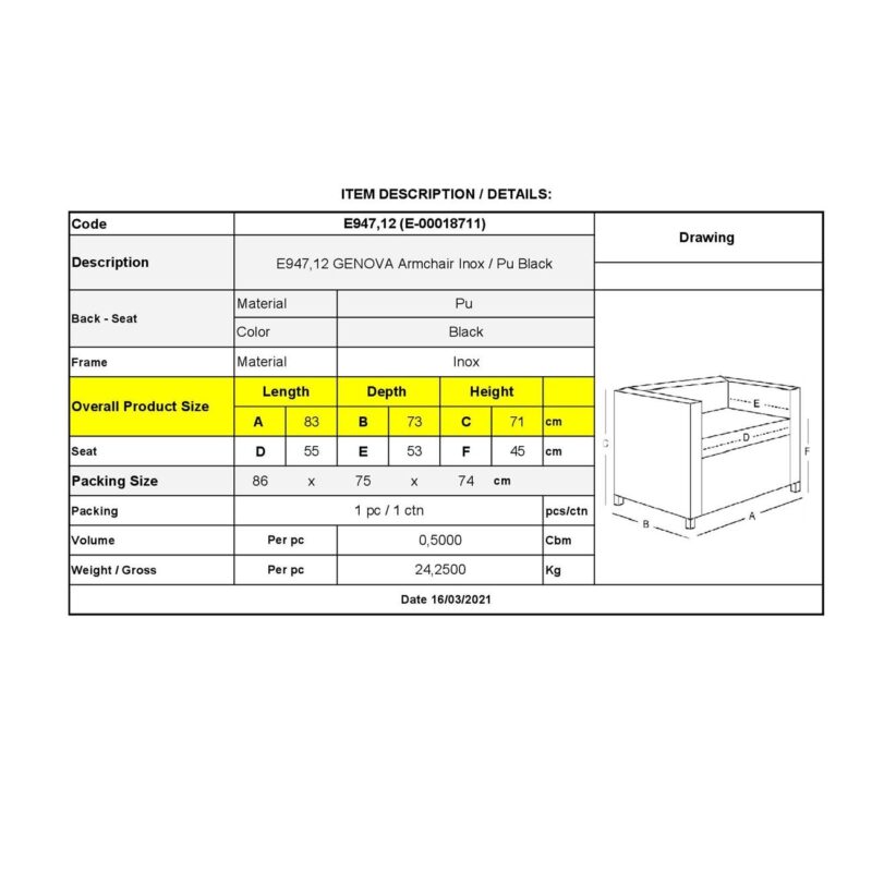 Фотьойл GENOVA Inox/Черен Pu