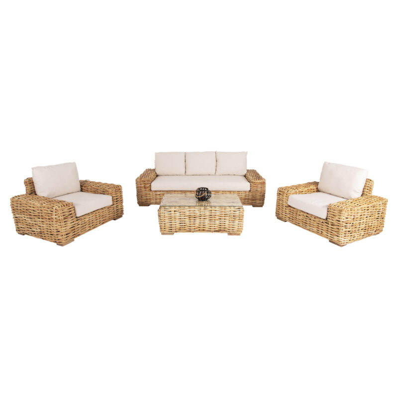 Натурален ратан, бели възглавници със свалящи се калъфи