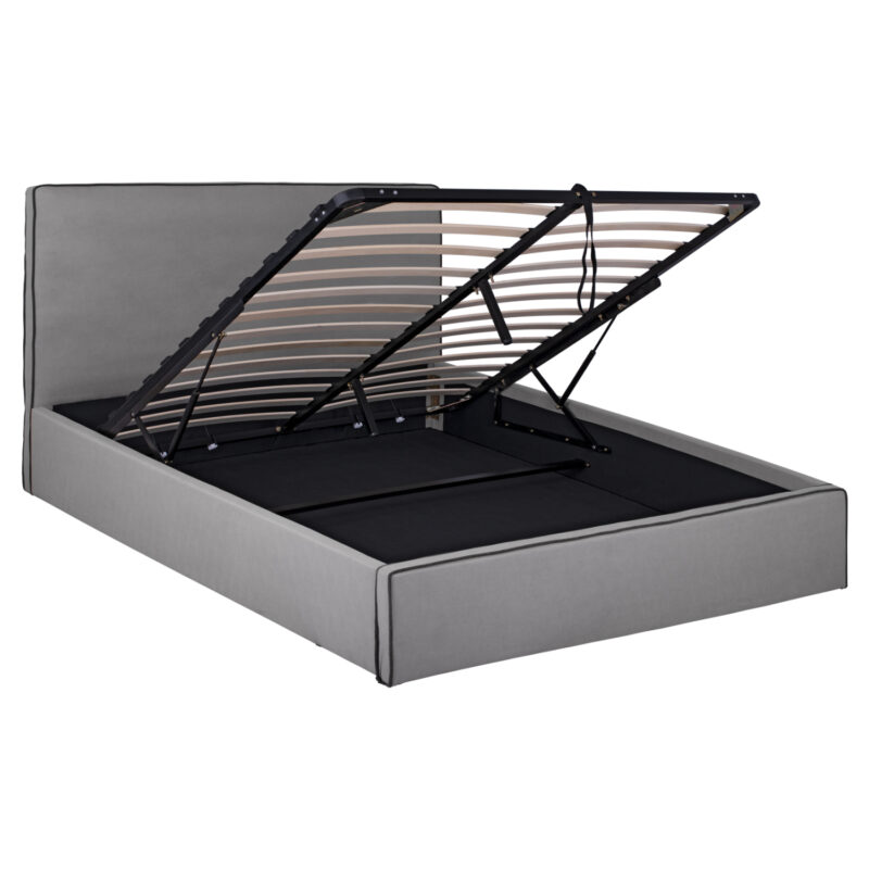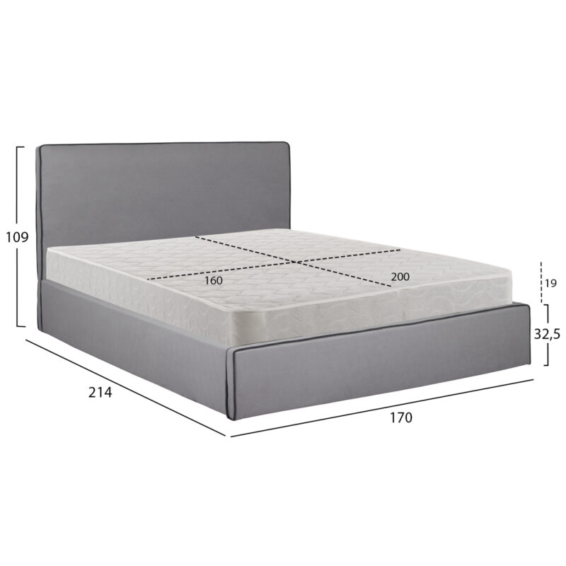 Прост и елегантен дизайн с висока табла и тапицерия от сива материя
