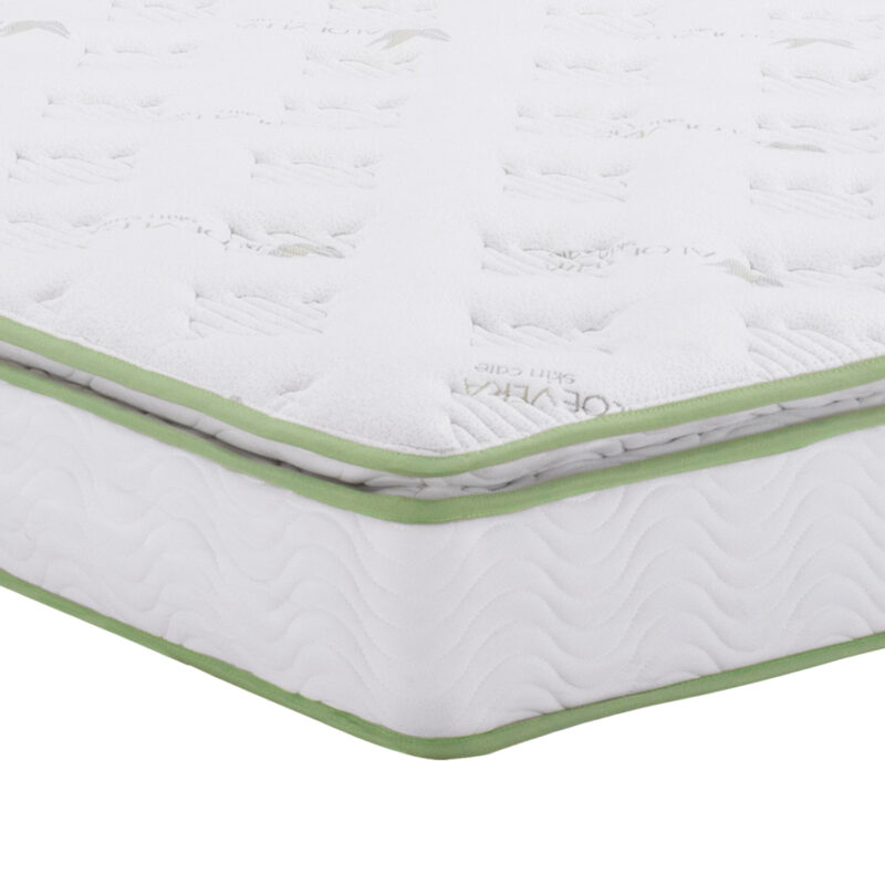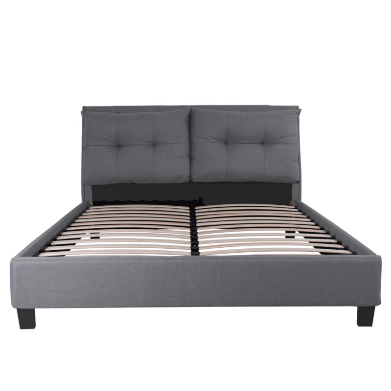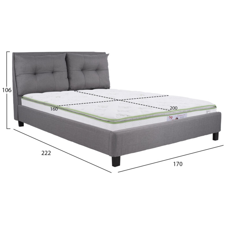 Тапицирано с висококачествена материя и две капитонирани възглавници на таблата
