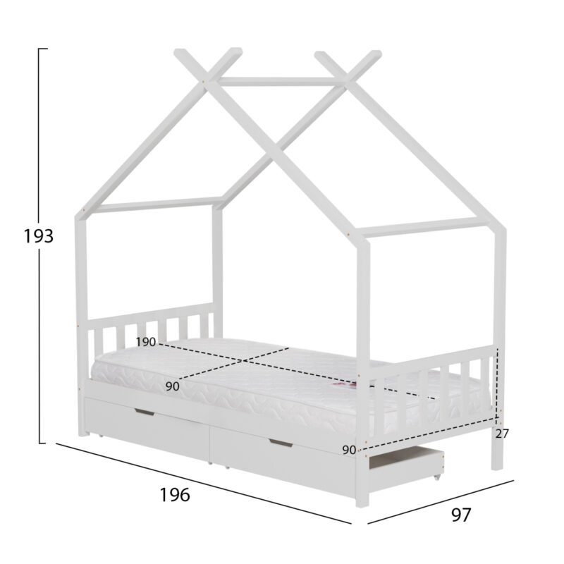 Легло във форма на къща с 2 чекмеджета за съхранение