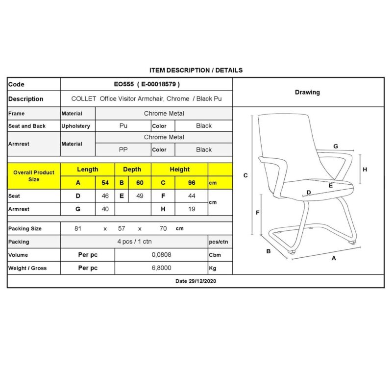 Посетителски стол ΕΟ555 COLLET – Хромирана рамка/Черен PU