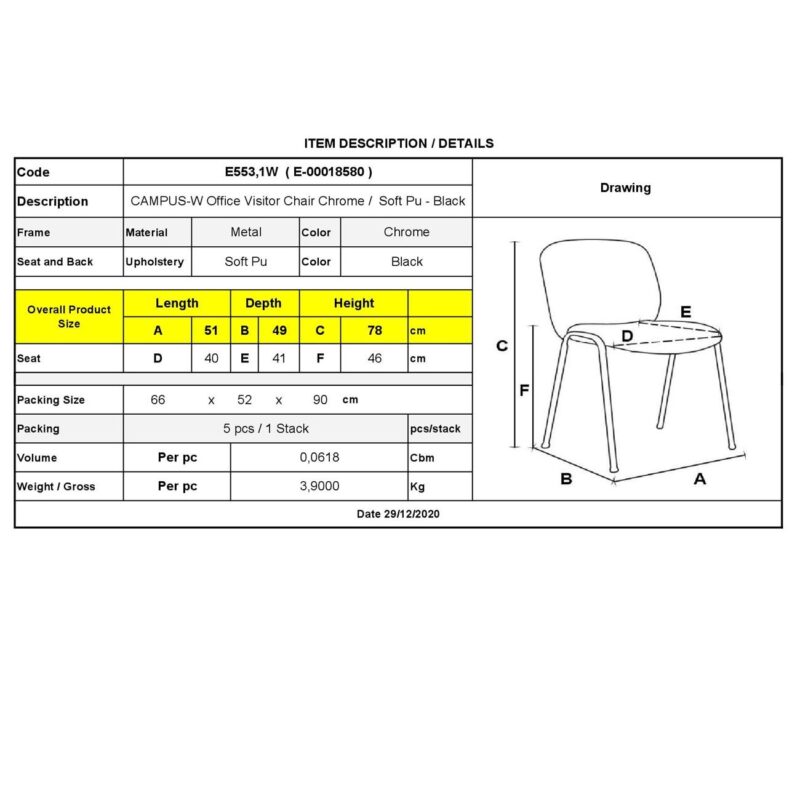 Посетителски стол CAMPUS – Черен