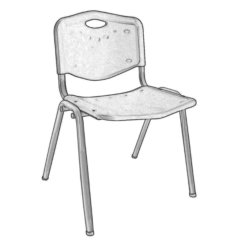 Стоманена рамка в сребрист цвят, седалка и облегалка от черен PP