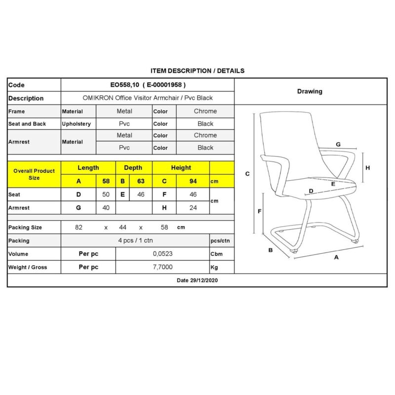 Посетителски стол OMIKRON – ЧЕРЕН