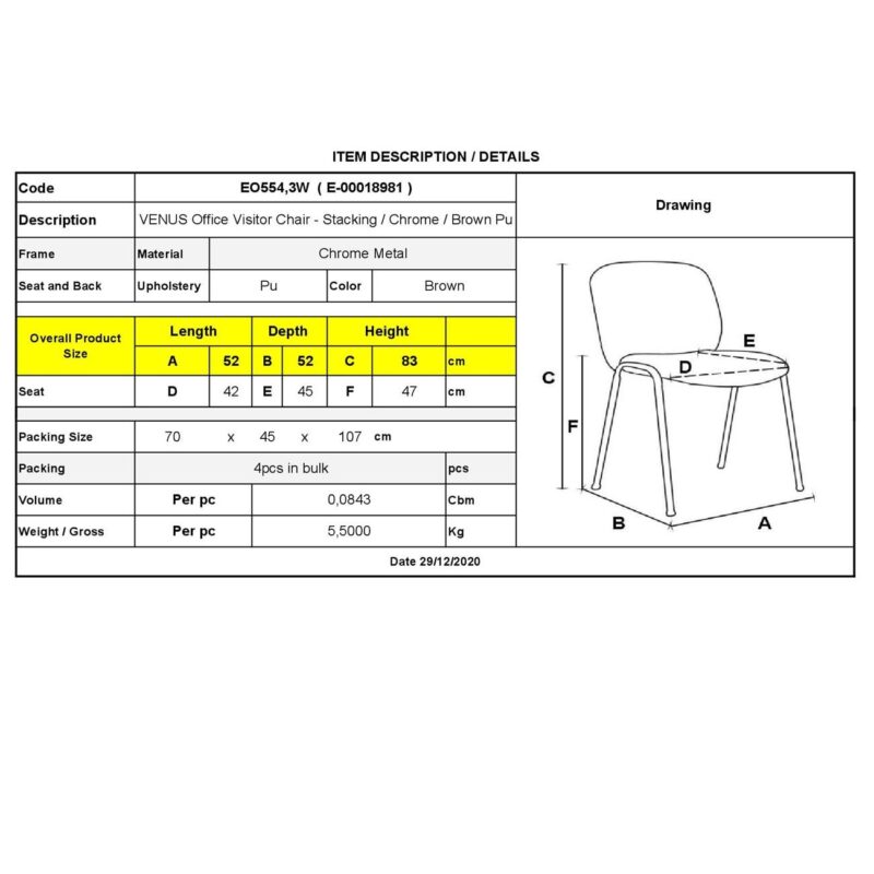 Посетителски стол VENUS – ХРОМИРАНА РАМКА/КАФЯВ PU