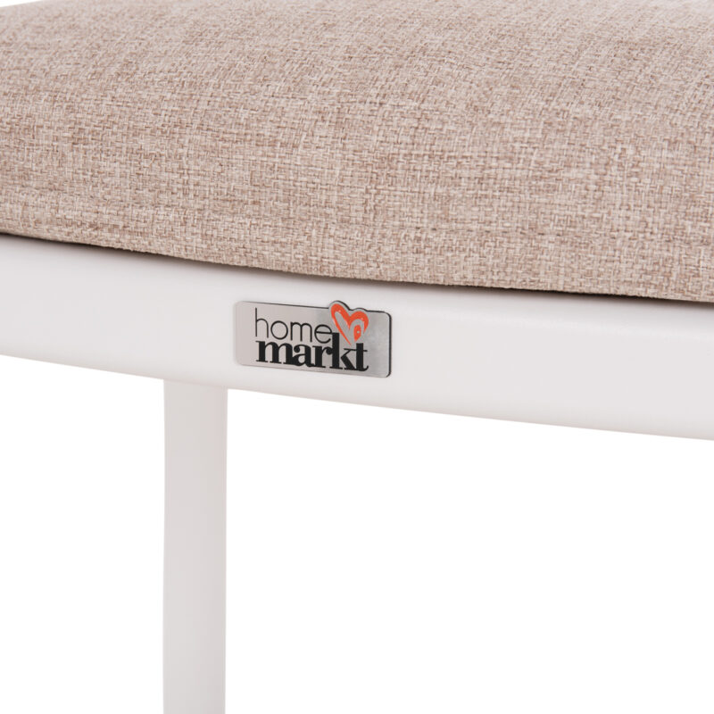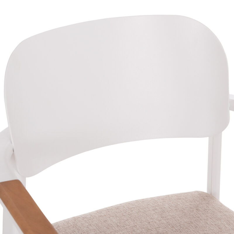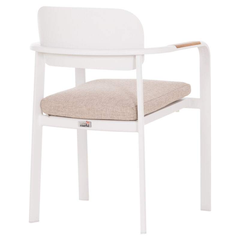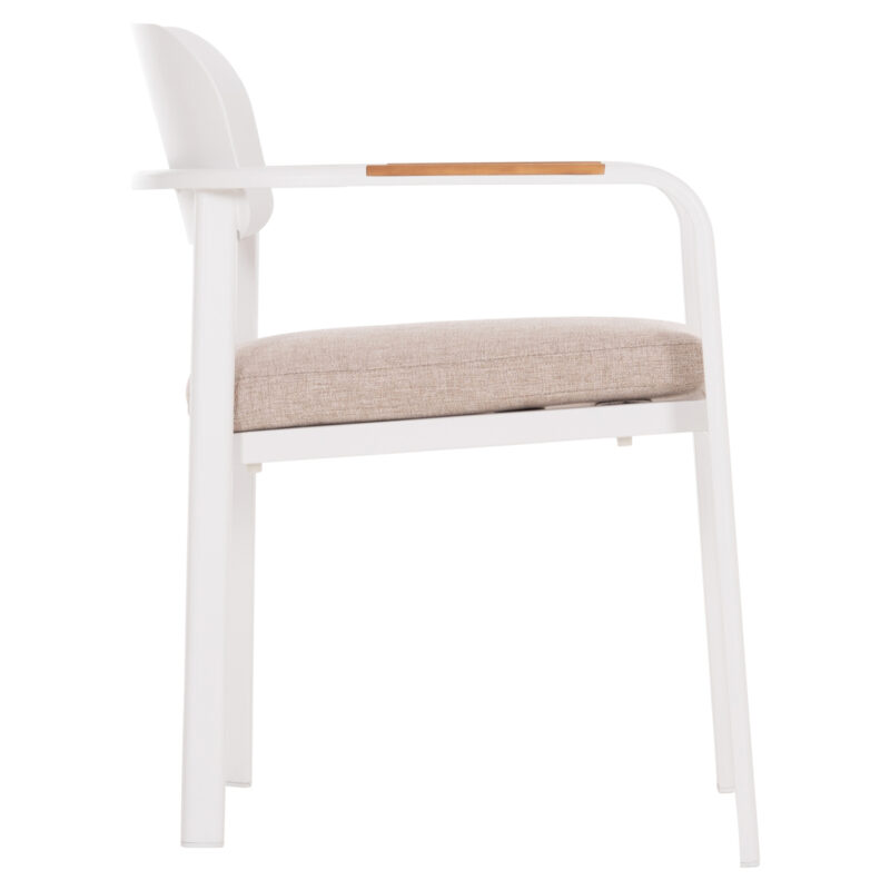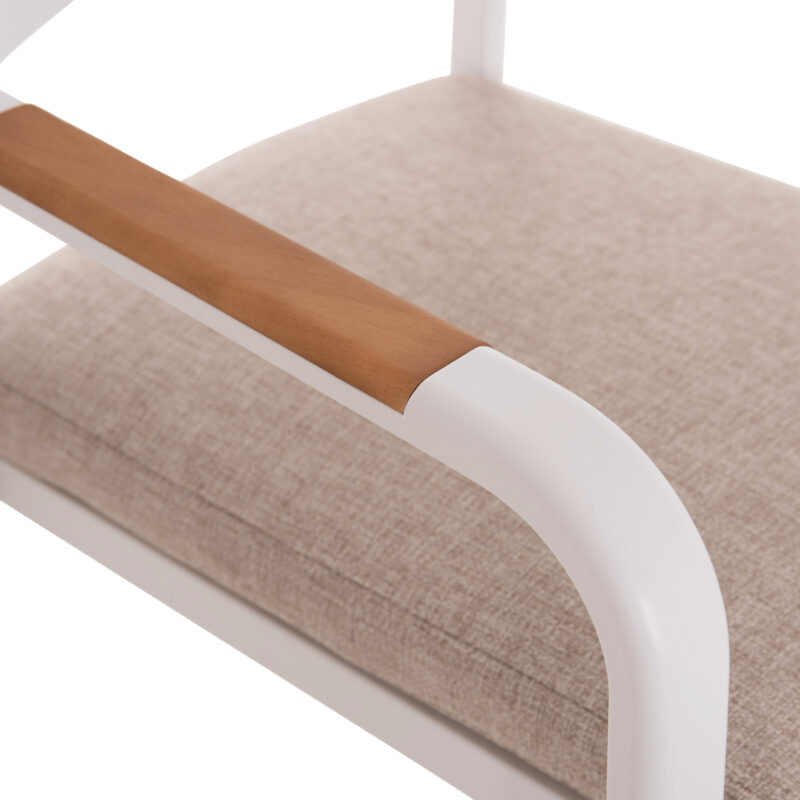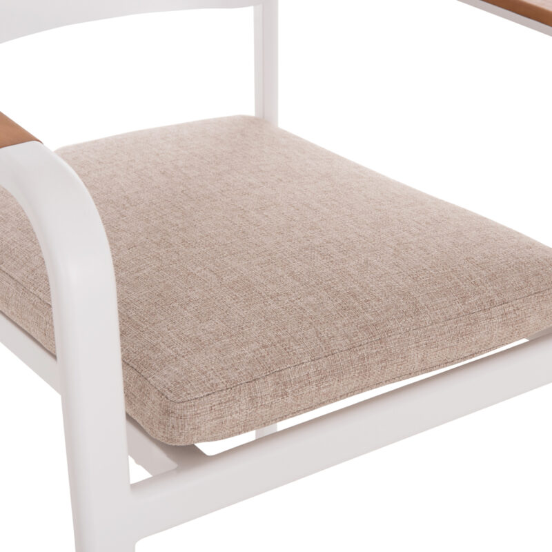 Бяла алуминиева рамка, облегалка от алуминий, възглавница с OLEFIN плат и 25D пяна, декорация от тиково дърво