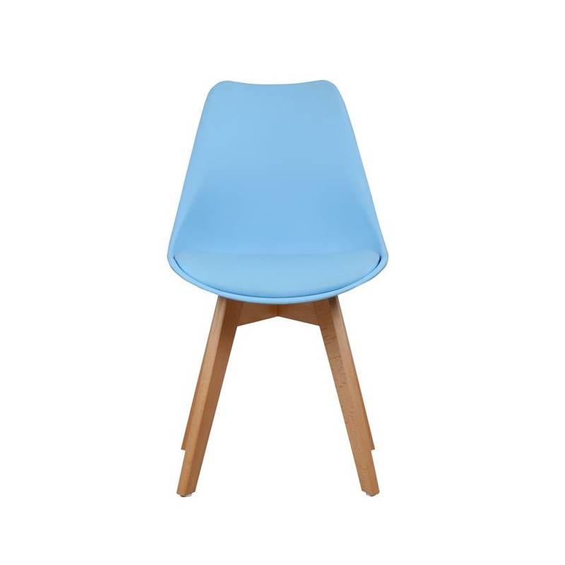 Седалка–облегалка: Висококачествен полипропилен с възглавница от PU кожа в син цвят.